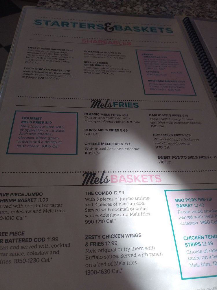 Served with cocktail or tarter sauce, cole slaw and Mels fries.